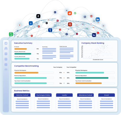 EXcelerate gathers large quantities of passive data, such as employee reviews, forums, and news articles, and then routes them through a structured psychometric workflow.